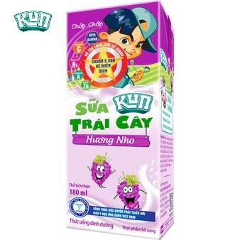 KUN - Sữa trái cây vị nho thùng 48 hộp x 180ml